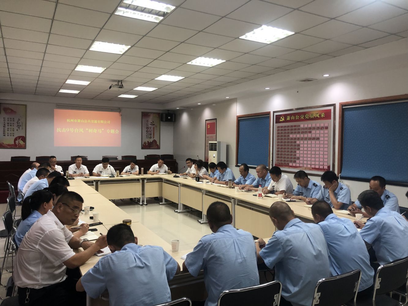 隨著今年第9號(hào)臺(tái)風(fēng)“利奇馬”(超強(qiáng)臺(tái)風(fēng)級(jí))登陸,蕭山受到了高強(qiáng)度風(fēng)雨考驗(yàn)。為進(jìn)一步落實(shí)臺(tái)風(fēng)“利奇馬”的防御工作,確保臺(tái)風(fēng)期間公交營(yíng)運(yùn)有序安全,自接到抗臺(tái)防御緊急通知后,根據(jù)集團(tuán)保障工作要求,蕭山公司立即于8月9日召開(kāi)抗臺(tái)專(zhuān)題會(huì)議,全面部署防汛抗臺(tái)工作。會(huì)上傳達(dá)了集團(tuán)抗臺(tái)工作要求,并結(jié)合公司實(shí)際部署、落實(shí)各項(xiàng)抗臺(tái)防汛工作,并作出要求:一是高度重視、落實(shí)精神;二是統(tǒng)一作戰(zhàn)、分工落實(shí);三是重點(diǎn)排查、整改隱患;四是加強(qiáng)保障、設(shè)施有效;五是營(yíng)運(yùn)有序、安全第一。