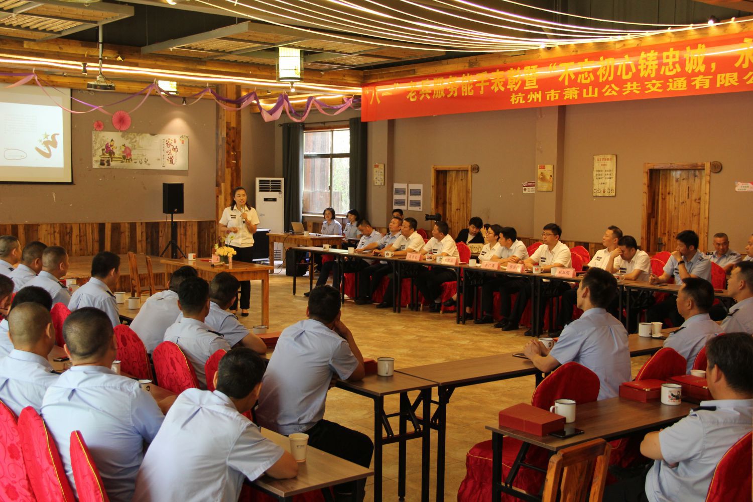 為充分發(fā)揮退伍老兵內在優(yōu)勢和示范帶動作用,8月11日上午,蕭山公交隆重舉行“八一”老兵服務能手表彰暨“不忘初心鑄忠誠,永葆本色立新功”交流座談會。蕭山區(qū)退役軍人事務局黨組成員、副局長李廣勇,公司班子領導、各車隊隊長、支部書記、老兵先進個人、新媒體記者等共計70余人參加活動。