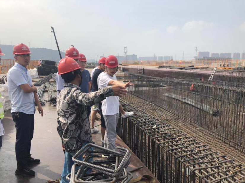 楊總首先查看項目現(xiàn)澆梁及橋面系施工情況,現(xiàn)場聽取了有關(guān)施工進展情況工作、工期節(jié)點安排、人員設(shè)備投入等方面的匯報,對目前的工作推進表示肯定。并提出明確要求:第一要抓緊安全、質(zhì)量、文明施工,落實安全為第一要務(wù);第二項目部合理安排施工計劃,細化施工節(jié)點;第三進一步加強施工管控,及時調(diào)整和優(yōu)化施工方案,確保如期完成施工生產(chǎn)任務(wù),爭取實現(xiàn)年度建設(shè)目標。