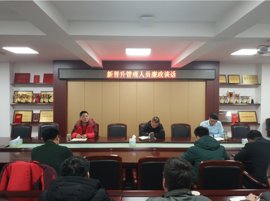 根據(jù)交通建管公司黨支部工作計劃安排,并結(jié)合公司年度廉政建設(shè)要求,確定召開新晉升管理人員廉政談話,會議于12月24日下午在公司201會議室舉行。由公司黨支部書記楊涌、常務(wù)副總徐全民列席、副總龔鐵峰主持,共參會晉升管理人員14名。