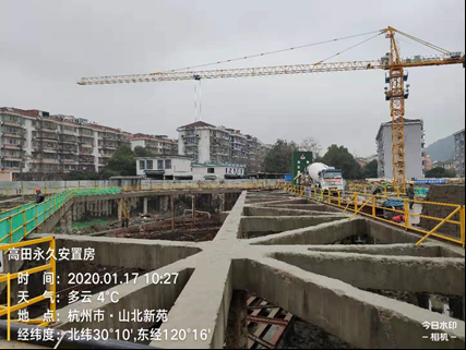 2020年1月18日,高田永久安置房項目第一塊混凝土底板順利澆筑完成。首塊底板澆筑砼方量1213m³,歷時23個小時圓滿完成。