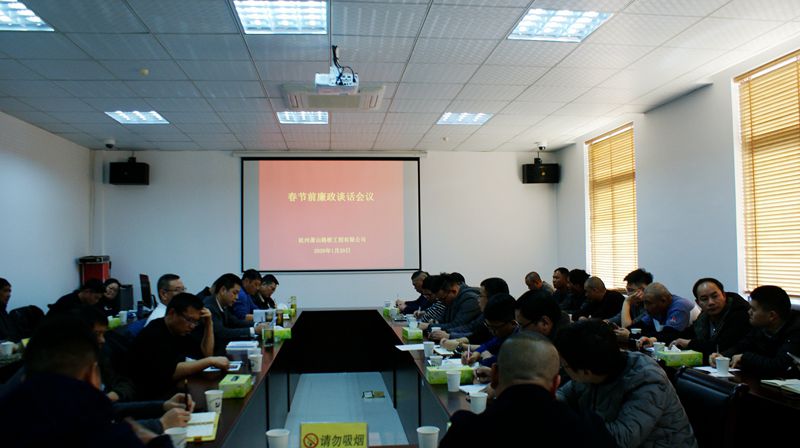 為進(jìn)一步加強(qiáng)春節(jié)期間黨風(fēng)廉政建設(shè),營(yíng)造廉潔過(guò)節(jié)氛圍。1月20日下午,公司紀(jì)檢組結(jié)合2019年度年終工作會(huì)議開(kāi)展節(jié)前廉政談話活動(dòng),公司班子成員、各部門(mén)、項(xiàng)目部負(fù)責(zé)人、班組長(zhǎng)等參加。