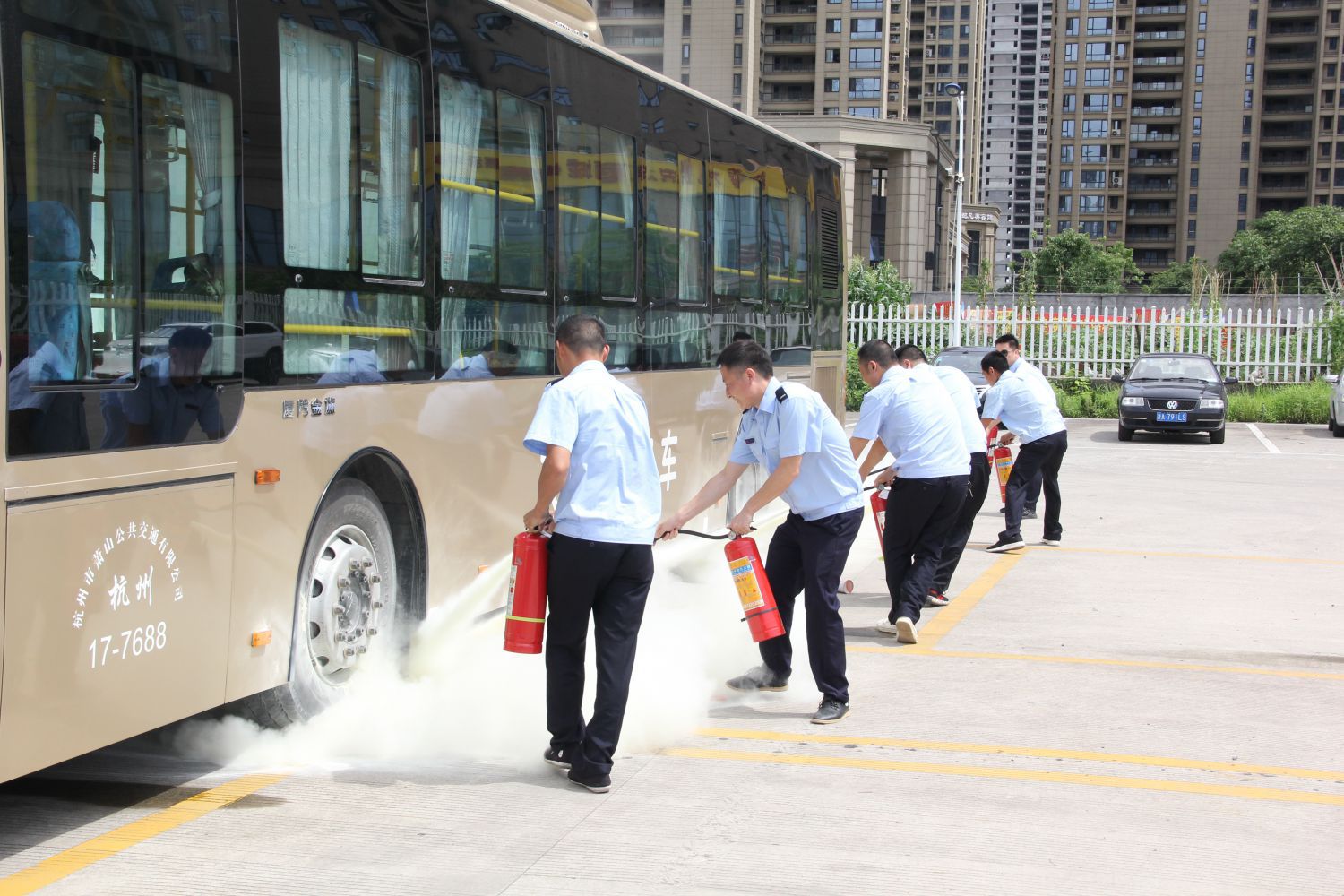 為強化公司安全管理,增強員工安全意識,提高突發(fā)事件應急處置能力,推動第19個“全國安全生產(chǎn)月”活動深入開展,6月17日下午,蕭山公交工會在城南停車場舉辦“消防突發(fā)事件應急聯(lián)動處置演練”活動。區(qū)交通派出所警官俞明德、區(qū)交投集團企管部經(jīng)理陳鋒、副經(jīng)理王軍民、消防專家徐曉偉等領導蒞臨指導,公司班子、各單位負責人、義務消防隊員、班組長代表、司機代表、保安代表等100余人參加觀摩。