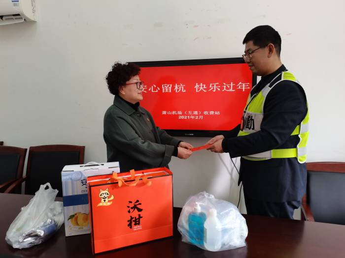 根據(jù)杭州市發(fā)改委和蕭山區(qū)財政局相關(guān)要求,認真做好“留杭送紅包”發(fā)放工作和“十送”關(guān)愛行動。2月7日下午,公司工會主席陳強前往蕭山機場(互通)收費站,對留杭過年職工陳杰進行慰問,工會副主席葉佳琪陪同。