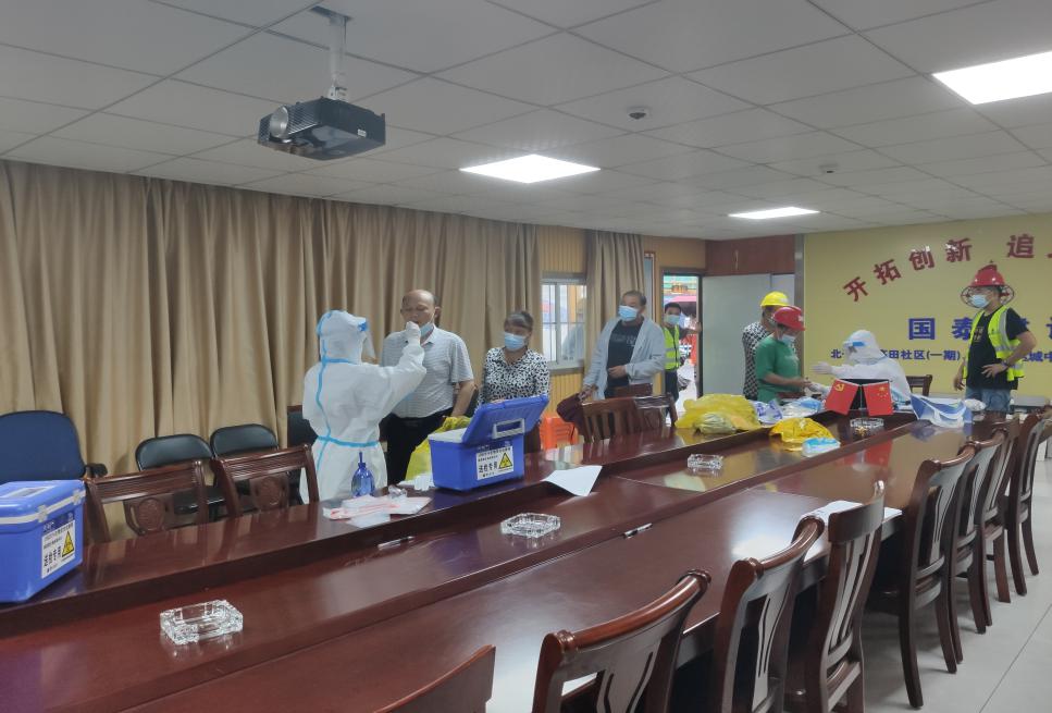 為合理安排時(shí)間,防止人員聚集,項(xiàng)目部提前設(shè)置專門等候區(qū)、信息登記區(qū)和采集區(qū),有序引導(dǎo)員工前往核酸檢測(cè)現(xiàn)場(chǎng),嚴(yán)格做到不扎堆、不聚集、保持“一米線”安全距離,根據(jù)現(xiàn)場(chǎng)檢測(cè)人員情況靈活調(diào)度,以每5人為一組進(jìn)行檢測(cè),確保工作開展有序進(jìn)行。經(jīng)過(guò)近三個(gè)小時(shí)的采樣,此次全員檢測(cè)工作圓滿完成。