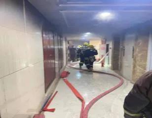 現場指揮組指揮救援小組攜滅火器材進入起火現場尋找火源進行滅火,由于戶內濃煙太大無法進入,使用樓層消防水帶沖水阻隔火勢蔓延造成更大災害等待消防隊員到達。消防救援車于15:18分到達現場,并于15:30分左右順利將火撲滅。
