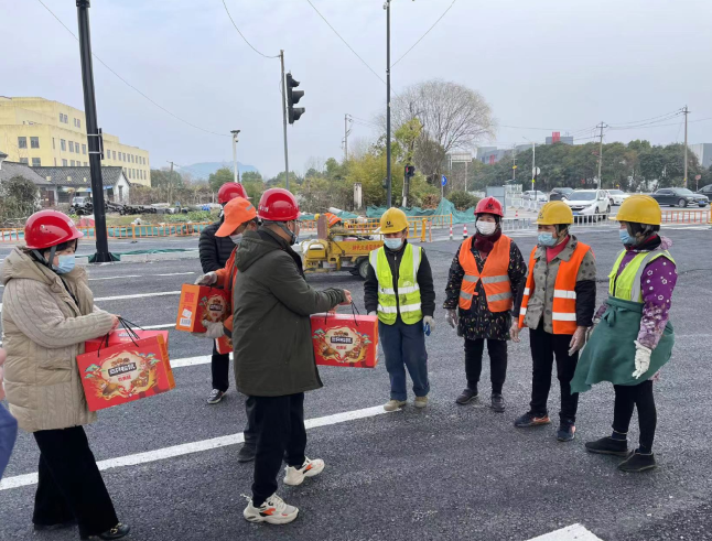 正值團圓的春節假期,區交投集團黨委委員、副總經理金文華、建管公司副總經理、工會主席王國芳對交通建管公司承建的“22688”交通建設項目時代大道改建工程留守的民工進行慰問。