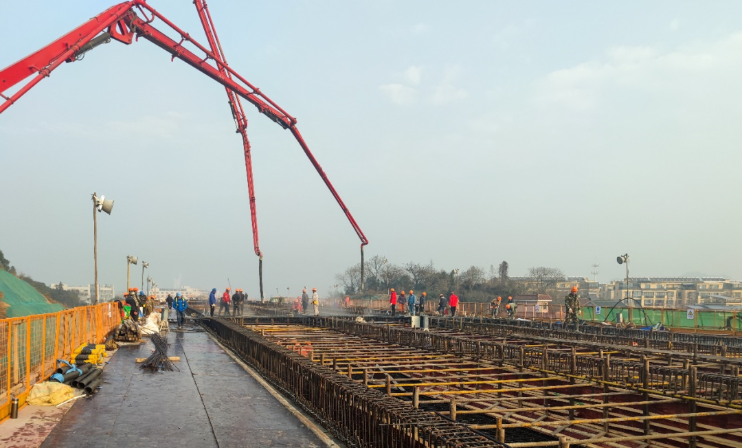 目前,項(xiàng)目主線高架橋下部結(jié)構(gòu)完成75%、上部結(jié)構(gòu)完成52%、地面道路37%。項(xiàng)目施工、管理人員共1630人,正在進(jìn)行保通道路施工、樁基施工、承臺混凝土澆筑。