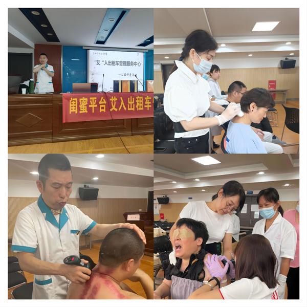 在現(xiàn)場參加理療的趙師傅說:“我從事出租車駕駛已有5年,基本上一天要開車10個小時以上,長時間地開車,腰肌勞損、頸椎病都找上我了,看到公司組織健康養(yǎng)生活動,我就來公司做了艾灸和推拿,感覺渾身輕松了許多,感謝公司推出了這樣一個有益健康的活動,也感謝社會各界對我們出租車駕駛員的關(guān)心關(guān)愛。”