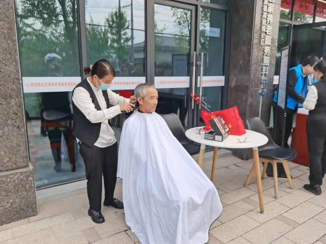 理發(fā)服務(wù)點前早早排起了長龍。“托尼老師”認真仔細地為到場的居民打理發(fā)型,動作嫻熟、技術(shù)精湛、服務(wù)周到,得到居民的一致稱贊。“這個服務(wù)真不錯,你們把服務(wù)送到家門口,真是方便大家了,”一位剛理完發(fā)的大爺夸贊道。