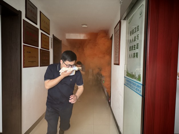 最后由安全營運(yùn)部負(fù)責(zé)人韓利明組織在辦公場所內(nèi)投擲煙霧彈,頓時(shí)煙霧繚繞,全體職工在面對(duì)突發(fā)事件臨危不亂、沉著冷靜,全員采取了正確的逃生姿勢,整個(gè)過程組織嚴(yán)密,疏散有序,逃生演練取得了圓滿成功。