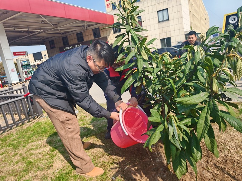 現(xiàn)場,大家分工協(xié)作,揮鍬挖坑、扶苗培土、澆水定根,將樹苗植入站區(qū)空地,為加油站添上盎然春意。活動中,大家還結(jié)合崗位暢談低碳理念,把環(huán)保初心融入日常服務(wù)。