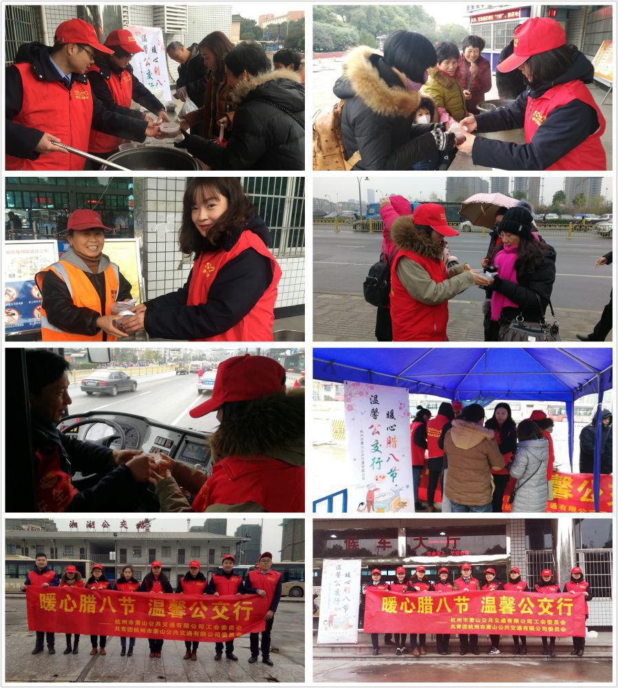 1月24日上午,公交公司開展了“暖心臘八節,溫馨公交行”活動,來自黨、工、青、婦組織的志愿者們齊聚在通惠路公交站和湘湖公交站,為公交司機和乘客遞上一碗熱騰騰的臘八粥,討個新年好彩頭。