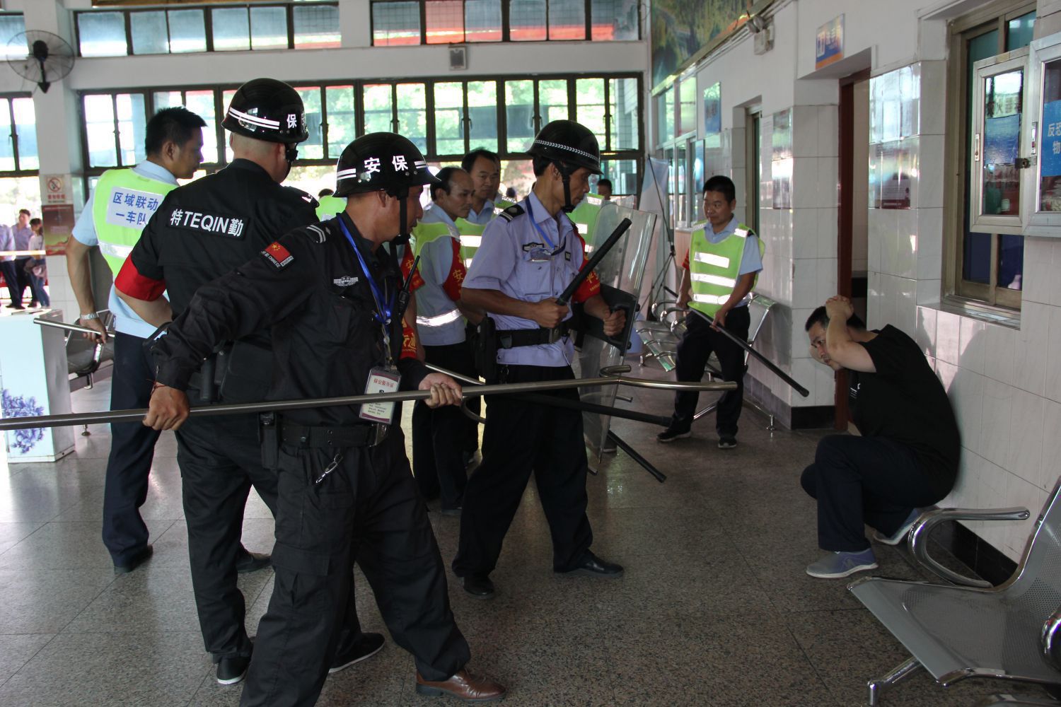 本次演練分為反恐和消防兩個部分:第一部分為反恐演練,主要內容為安檢崗人員發現攜帶危險品的乘客有反社會傾向,及時上報并熟練使用反恐裝備制服嫌犯,隨后交給了趕來的公安民警,本部分內容主要測試安檢崗人員的應急處置能力以及聯動單位的反應速度。第二部分為消防演練,靠近場站油庫的一輛混合動力車發生自燃,場區內駕駛員及時發現并上報。這一部分目的在于測試公司全員消防應急處置的實戰能力和對于消防設施設備的使用熟悉程度。