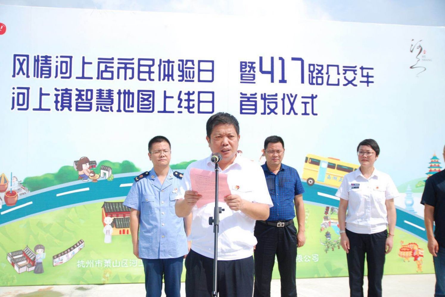 8月1日上午9時(shí),河上公交站啟用暨417(M)新線開通儀式在河上公交站舉行。河上鎮(zhèn)長俞萬昌及河上鎮(zhèn)相關(guān)班子成員以及蕭山公交董事長、總經(jīng)理吳根法,書記王黎洪等班子領(lǐng)導(dǎo)參加了開通儀式。